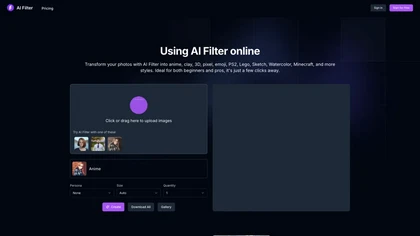 Transform your photos with AI Filter into anime, clay, 3D, pixel, emoji, PS2, sticker, and more styles