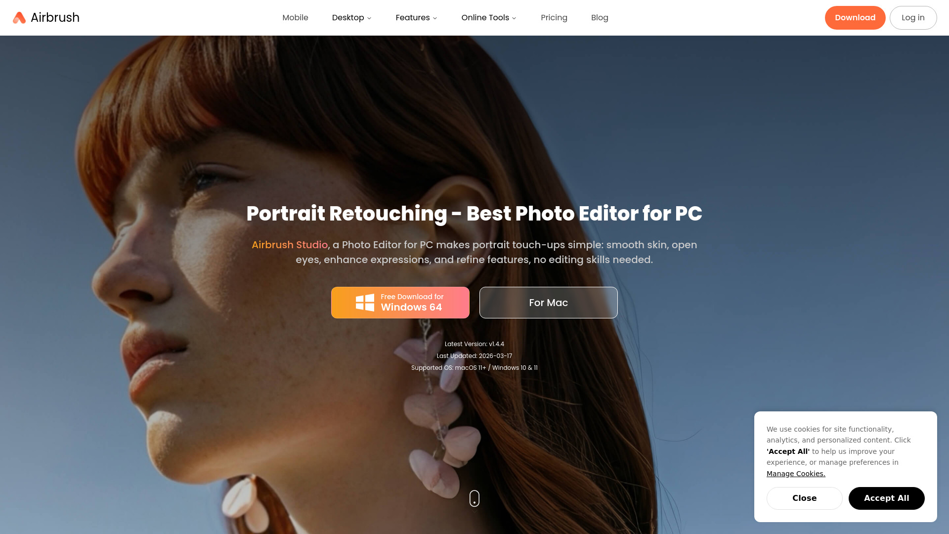 AI-powered desktop photo editor for professional portrait retouching, skin smoothing, and batch image processing.