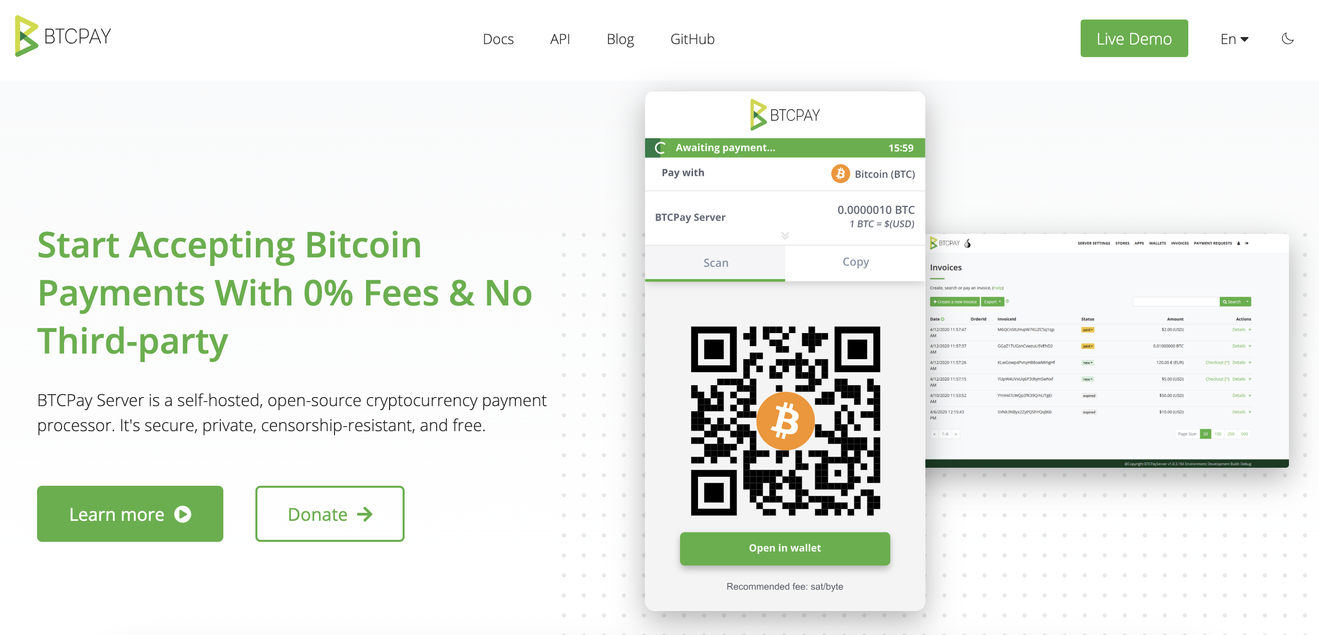 BTCPay Server is a self-hosted, open-source cryptocurrency payment processor. It
