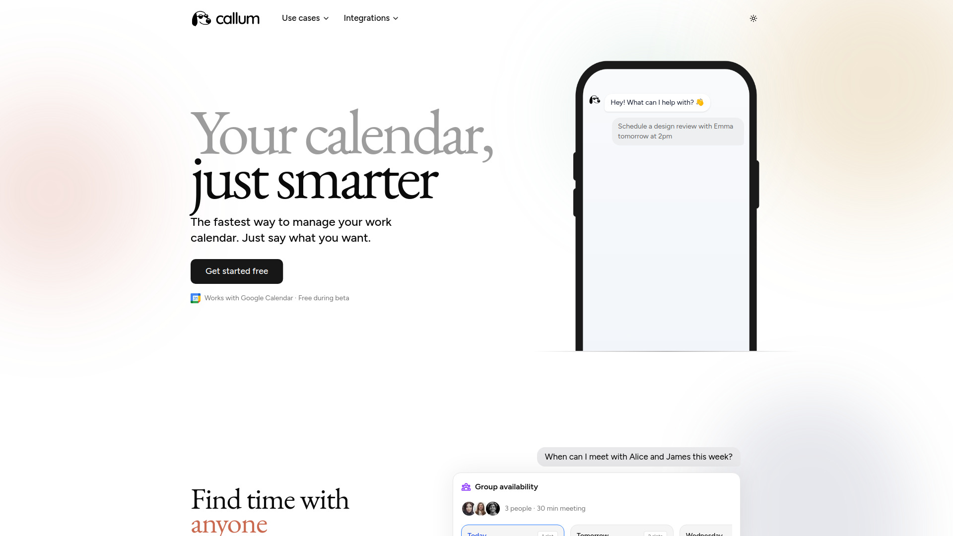 AI calendar assistant that uses natural language to intelligently schedule and manage team meetings.