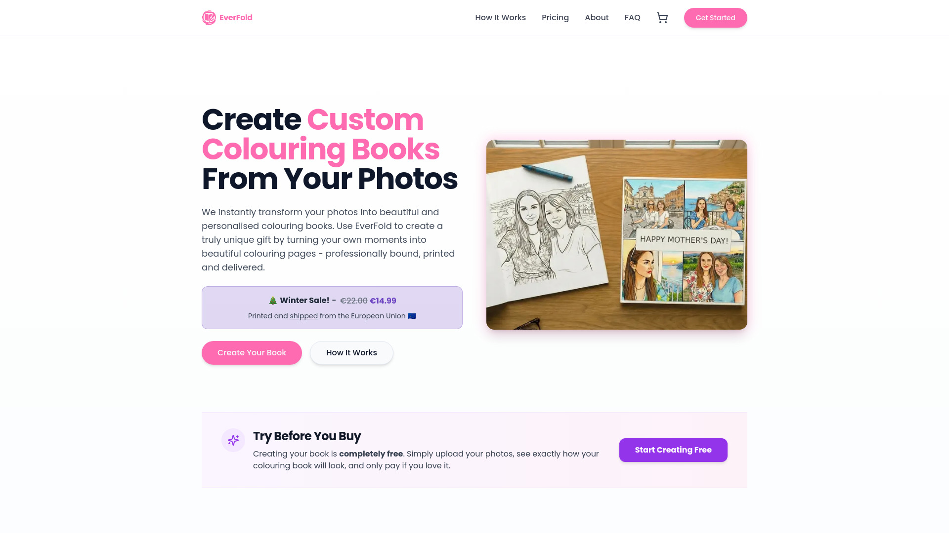 Transforms personal photos into professionally printed, custom colouring books using AI technology.
