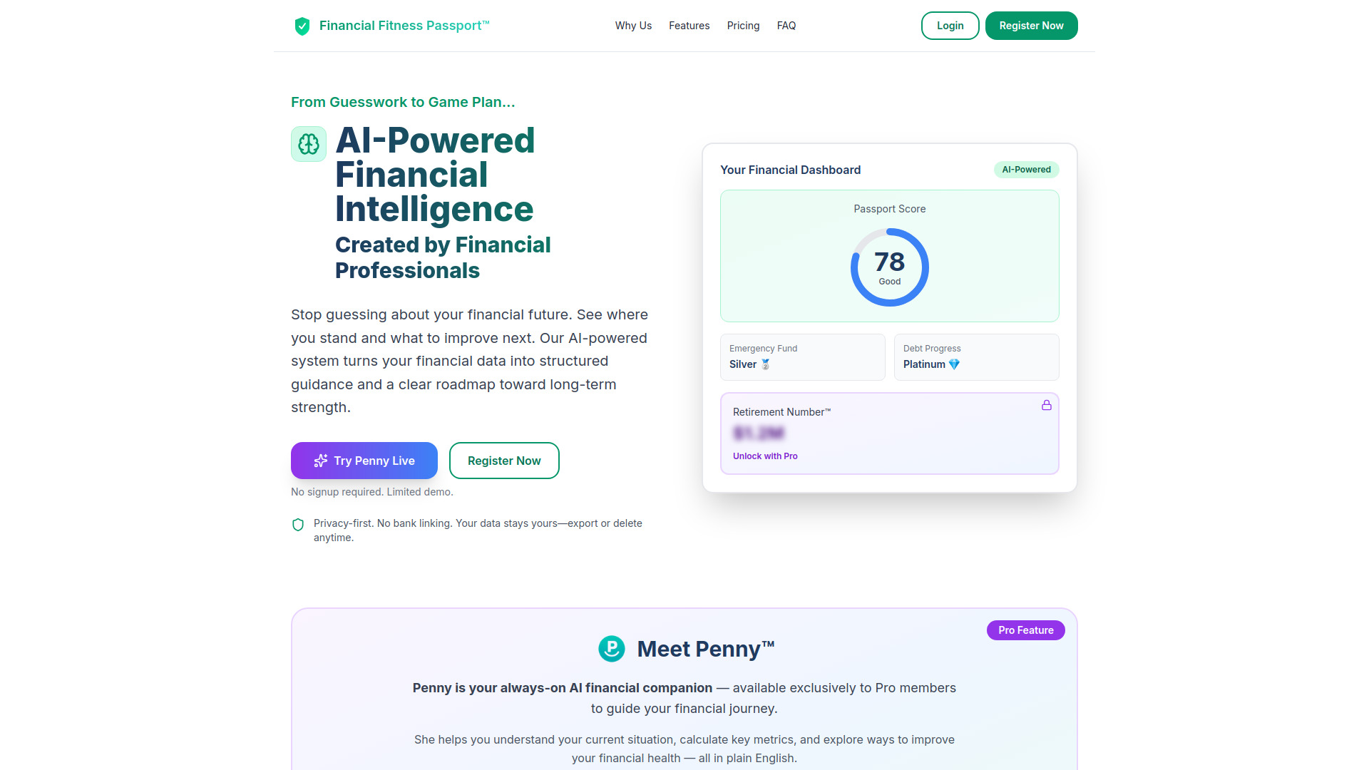 AI-powered financial guidance platform for retirement tracking, debt management, and privacy-first financial planning.