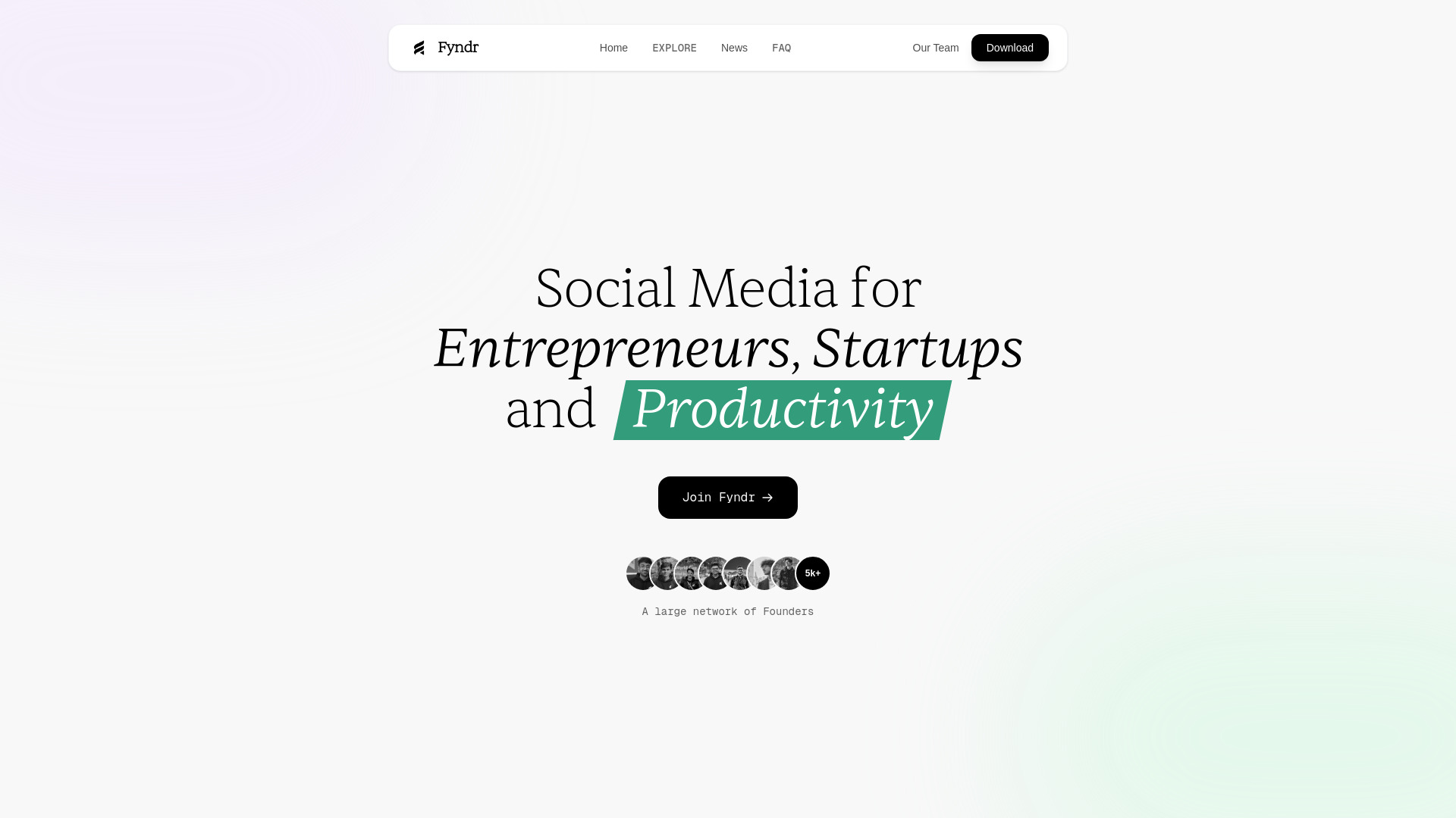 Startup-first social platform combining networking, AI tools, idea validation, team formation, and funding.