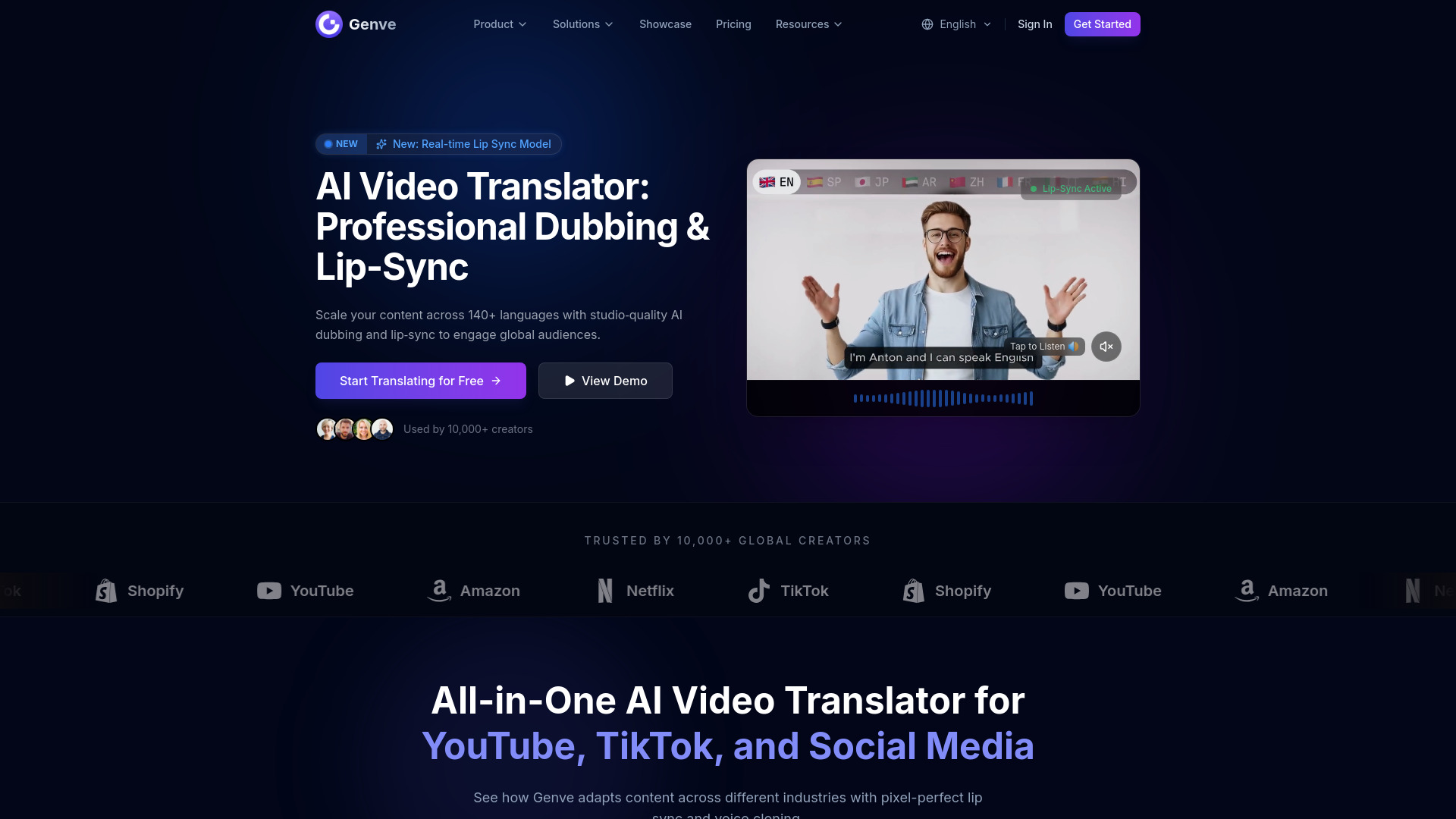 AI video translator and dubber with natural lip-sync for global content scaling.