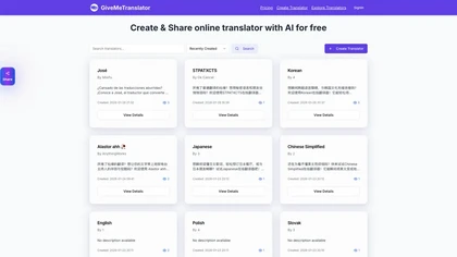 Build, use, and share specialized translators without registration. Perfect for specific terminology, style transformations, or creative language tasks.