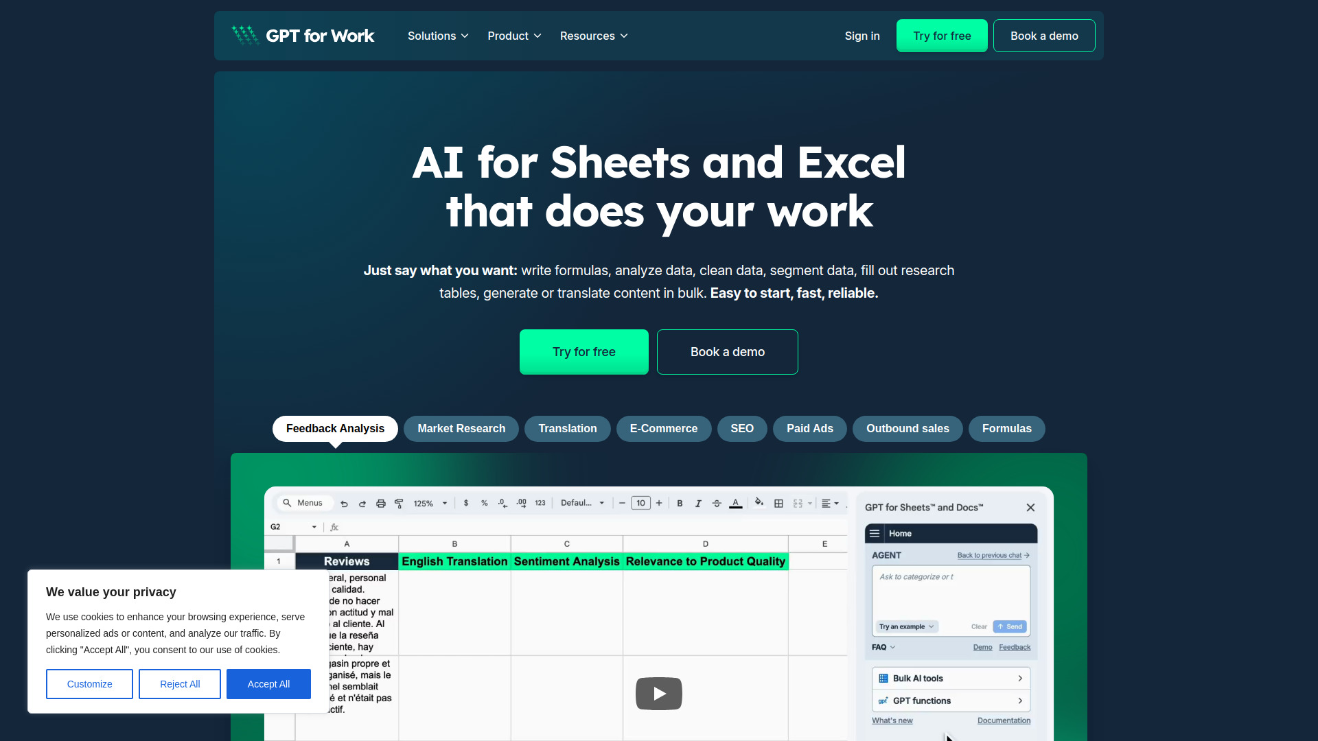 AI for Sheets and Excel that does your work