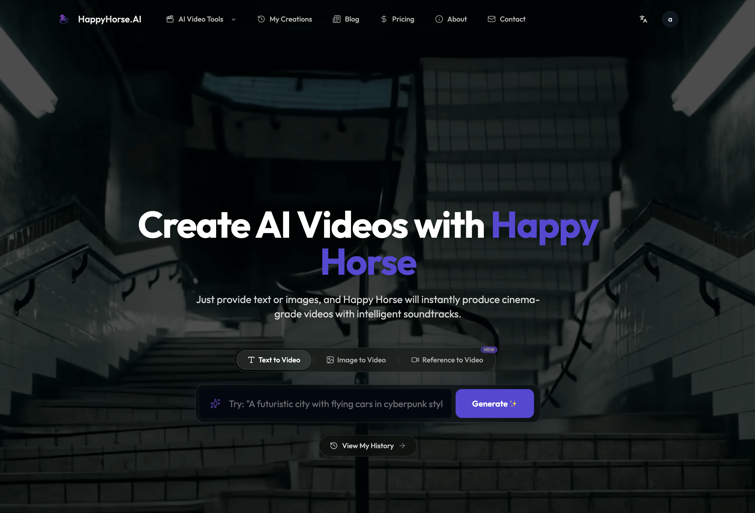 Create stunning AI videos in minutes with Happy Horse. Turn text or images into cinema-grade videos with auto-generated soundtracks. Try it free.