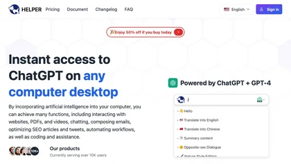 Helper is a native computer desktop ChatGPT client designed for entrepreneurs, developers and marketers. Seamlessly integrate AI assistances into your daily tasks.