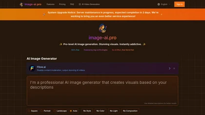 Create unlimited professional AI-generated images for free. No registration required. Fast, high-quality image generation with advanced AI technology.