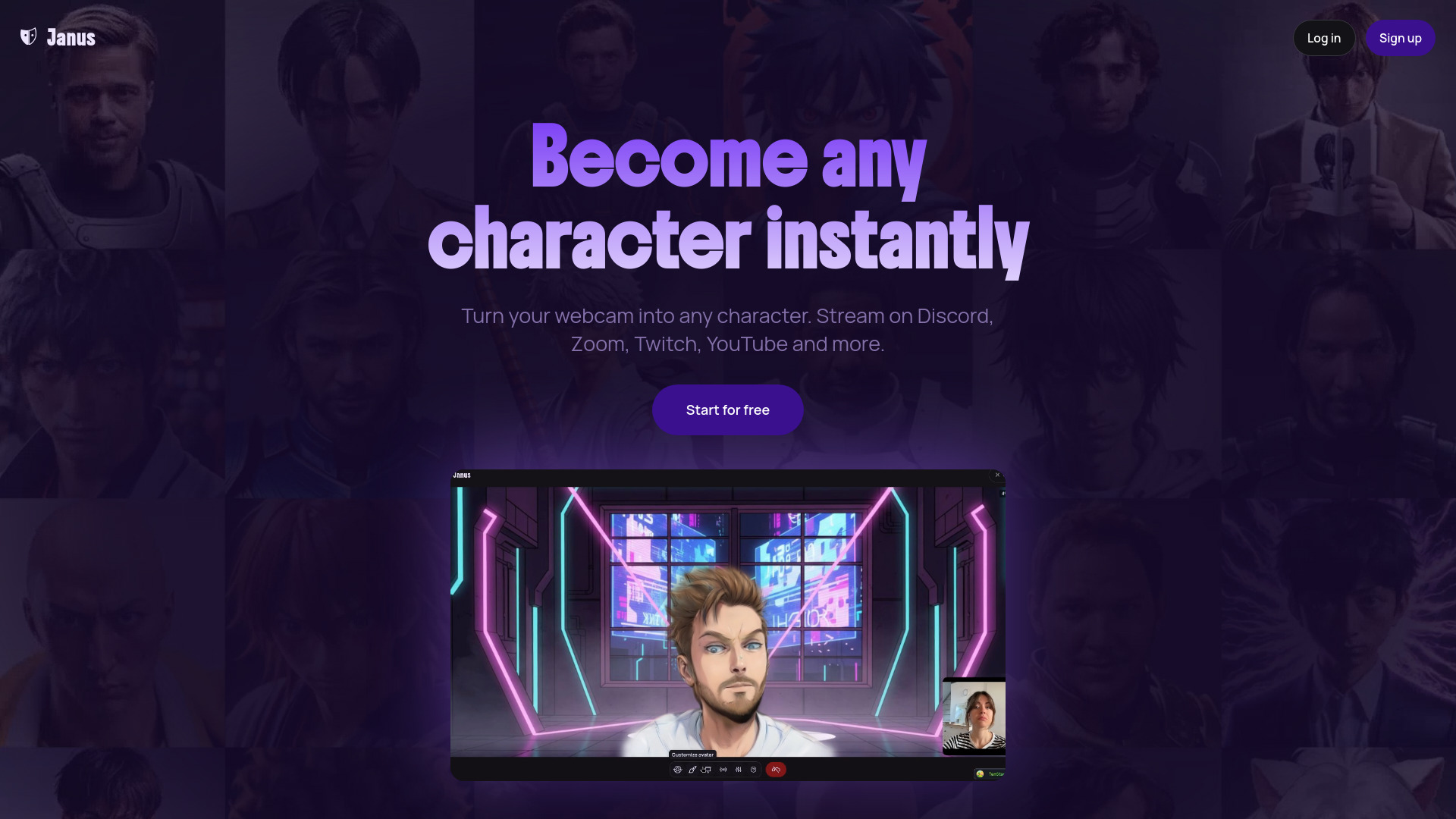 Real-time AI avatar platform for streaming and video calls using a standard webcam.