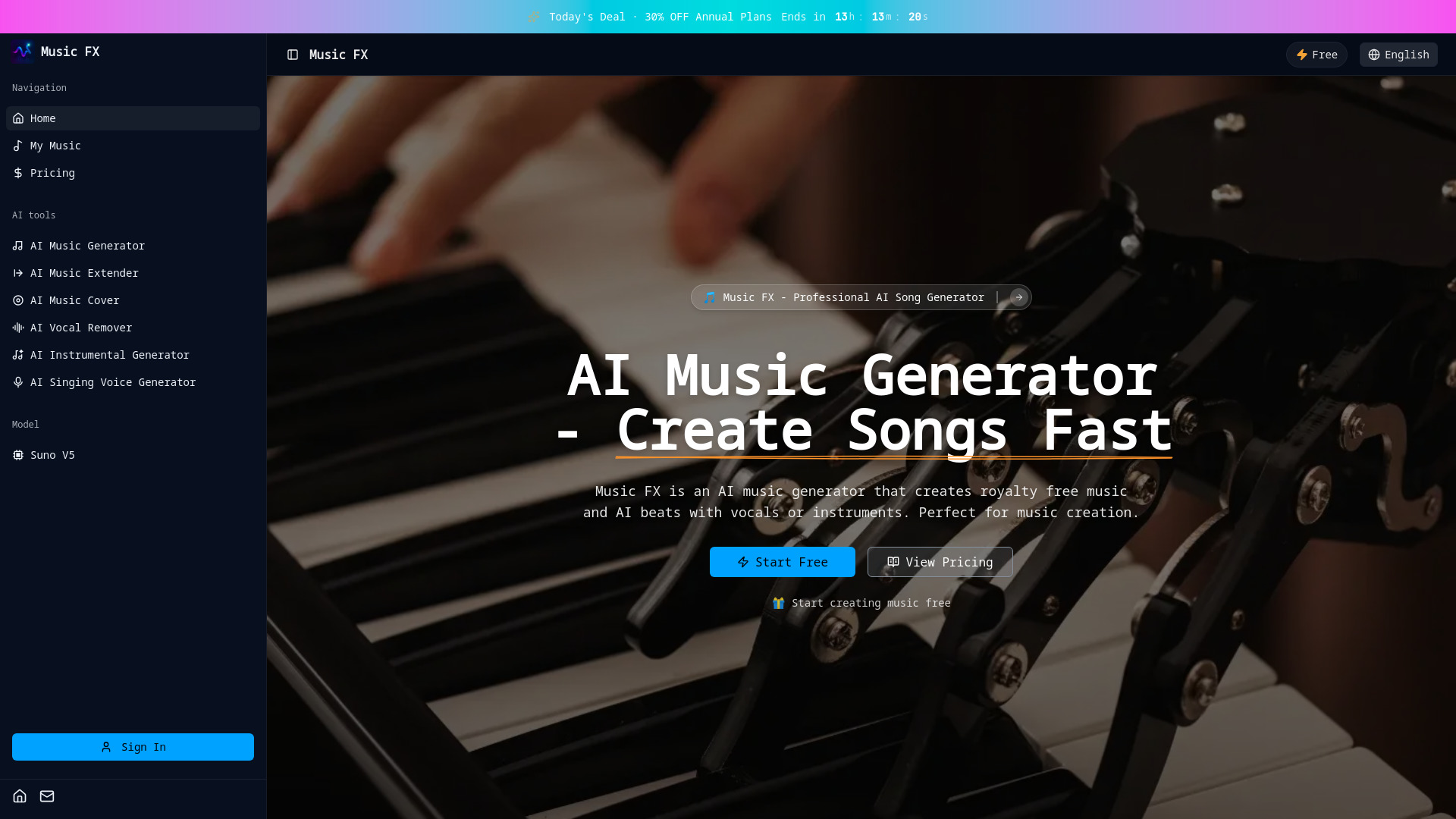 🚀 ProductivityProfessional AI music generator for creating royalty-free songs, beats, and vocals instantly.