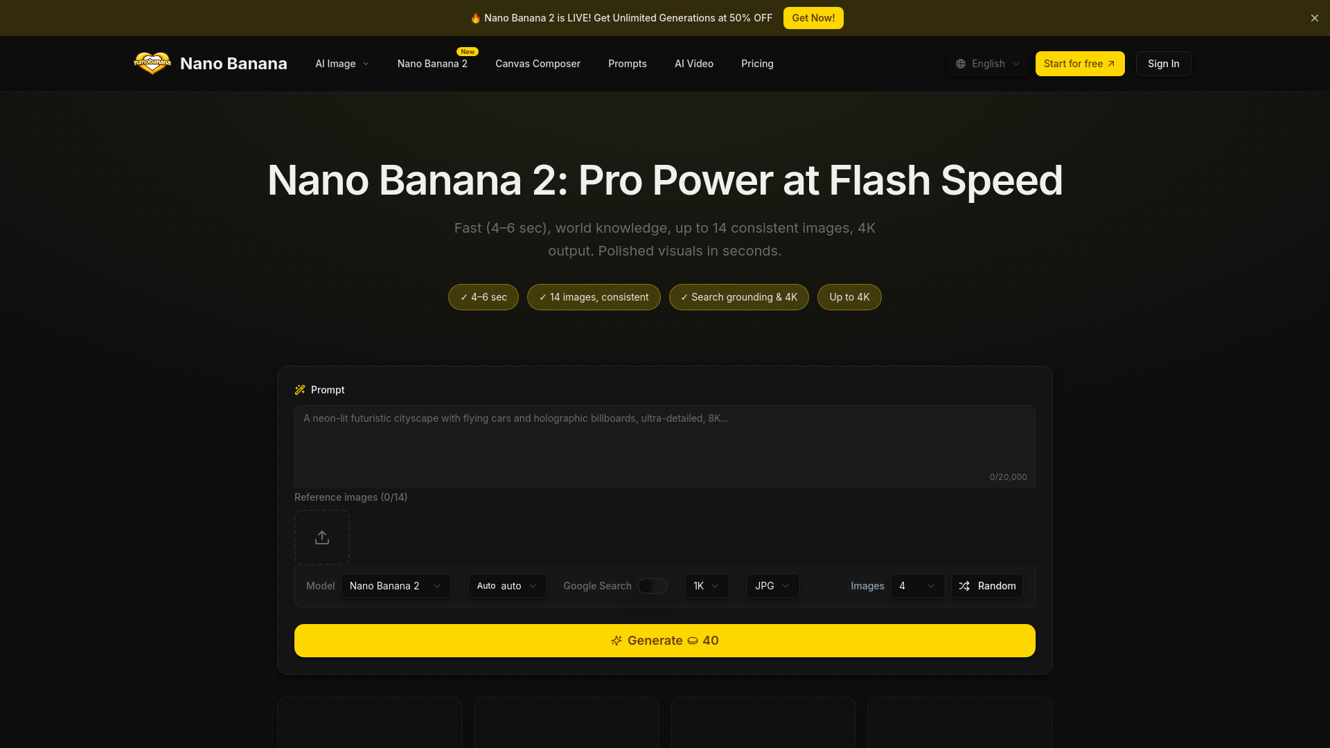 Lightning-fast AI image generator with search grounding and multi-image subject consistency.