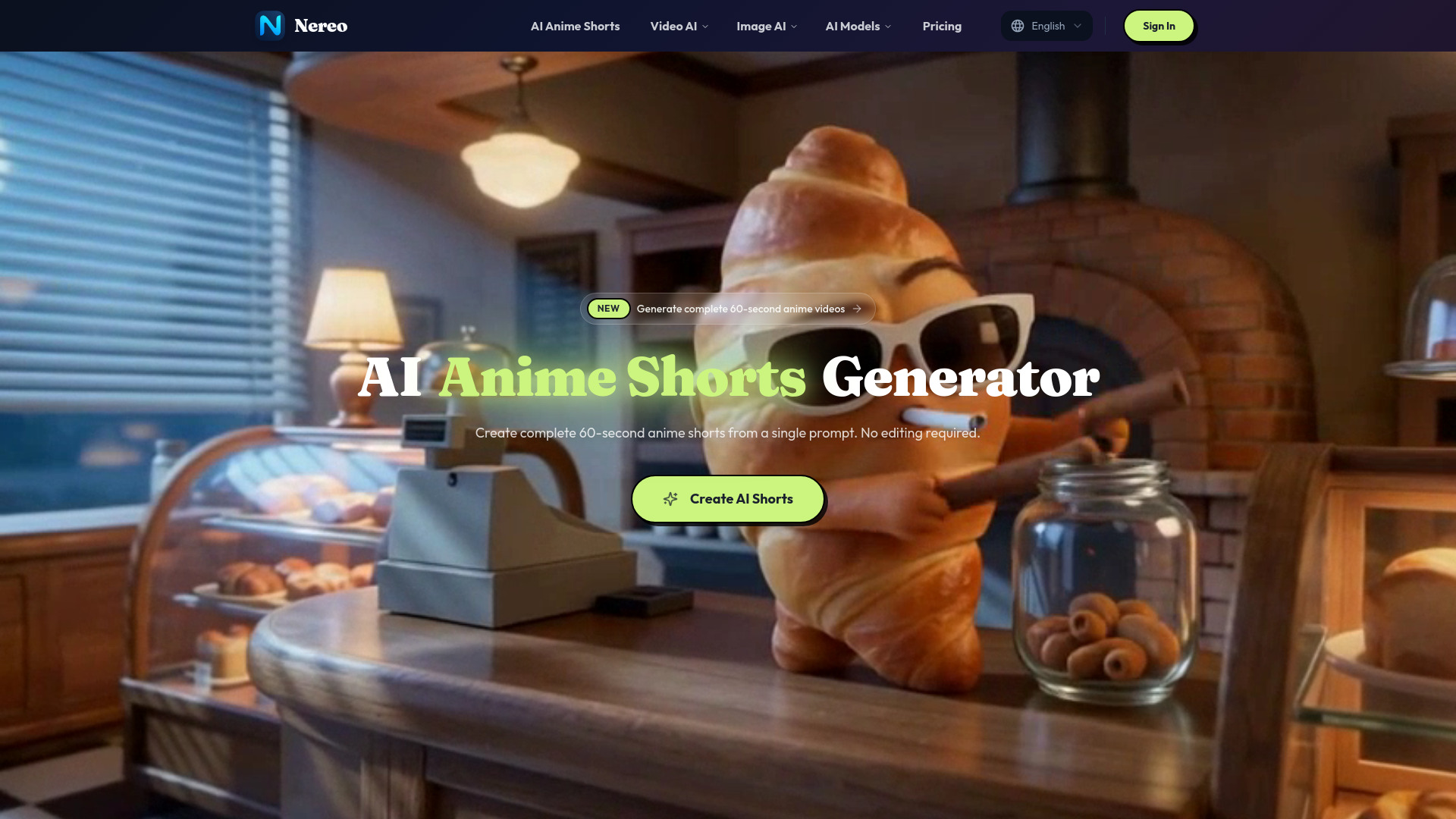 AI anime generator creating complete 60-second shorts from a single prompt.