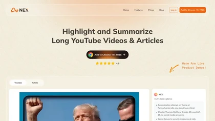 Nex uses AI to analyze YouTube videos and articles to get summaries and highlights in one click. (a free chrome extension to give summary and outline of Youtube videos or articles)