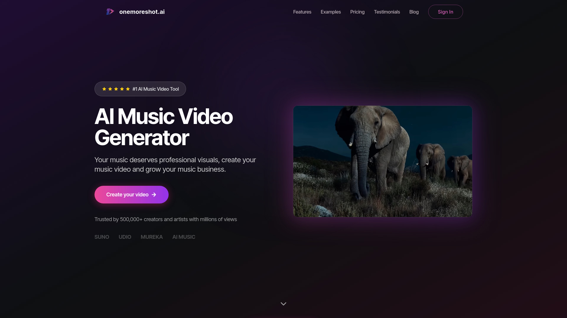 One More Shot is the leading AI music video generator app that turns songs into finished videos in minutes. Artists and creators can upload a track, generate beat-synced visuals, add lip-sync, and export in the right format for TikTok, YouTube, Instagram, and other platforms.