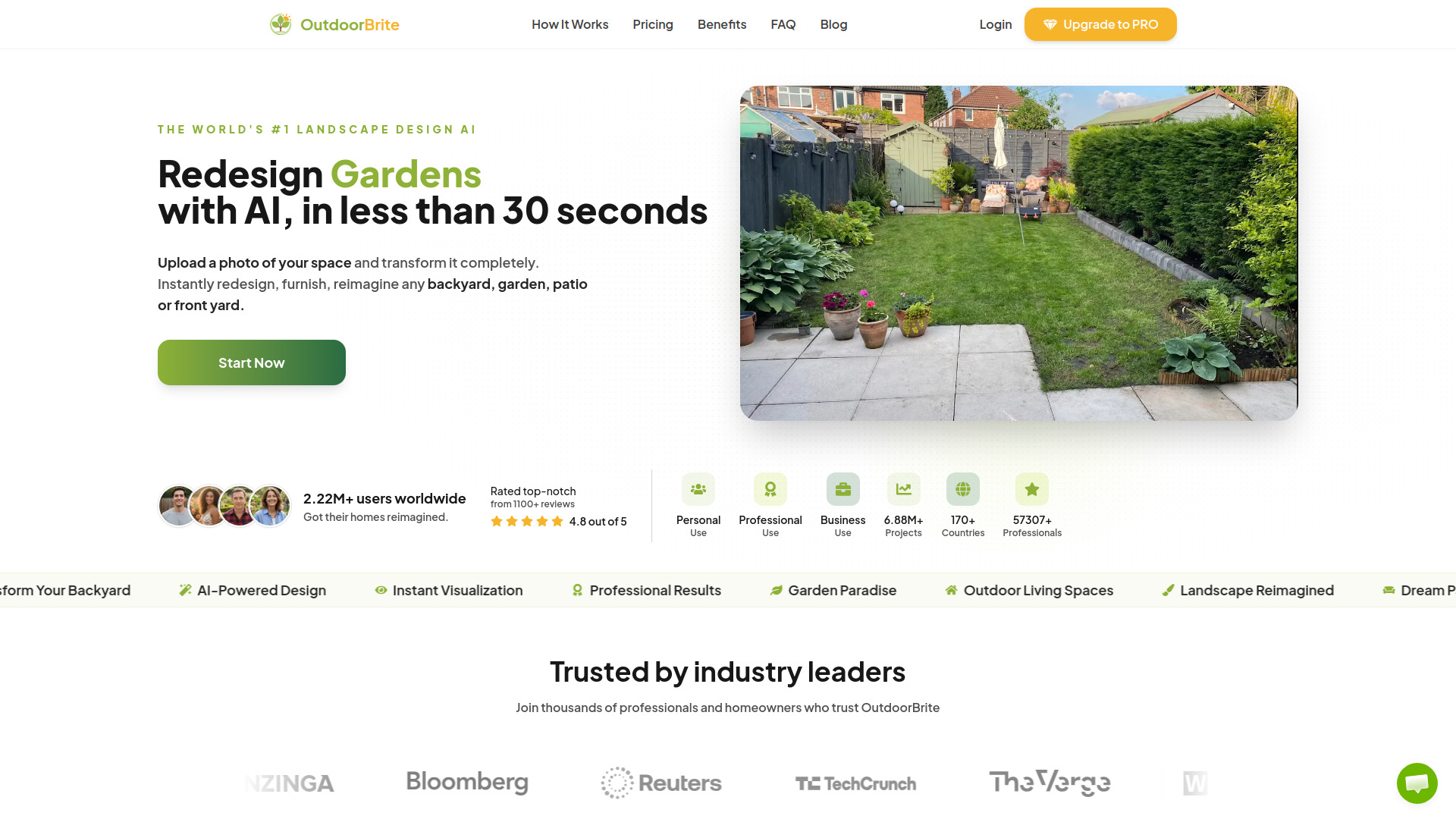 AI landscape design tool for instant photorealistic backyard and garden transformations.