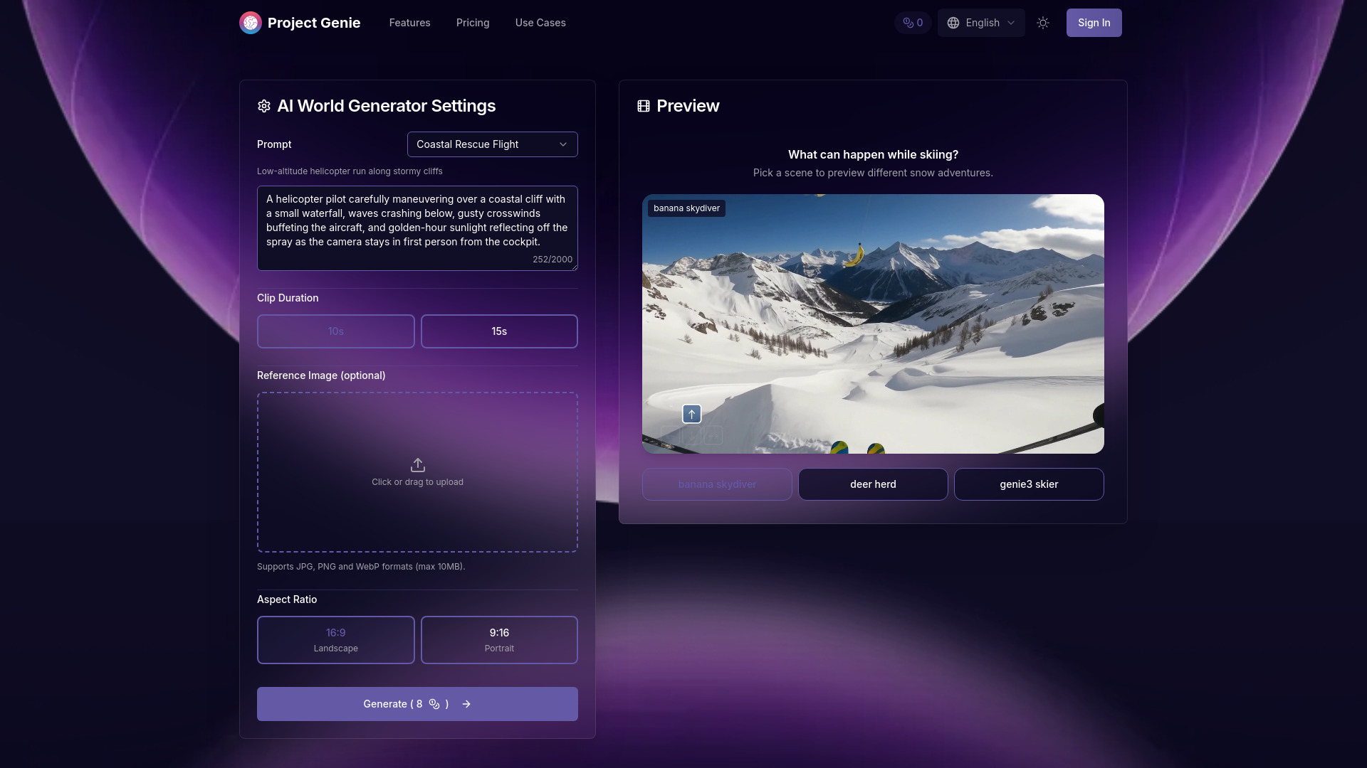AI platform using Google Genie 3 to create photorealistic, interactive 3D worlds from text.