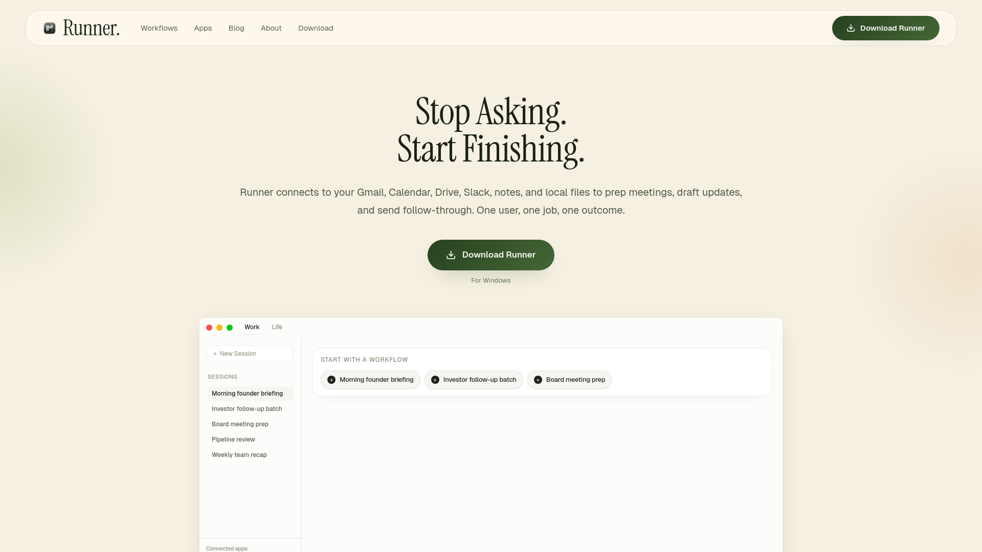 AI Chief of Staff automating founder workflows like meeting prep and follow-through.
