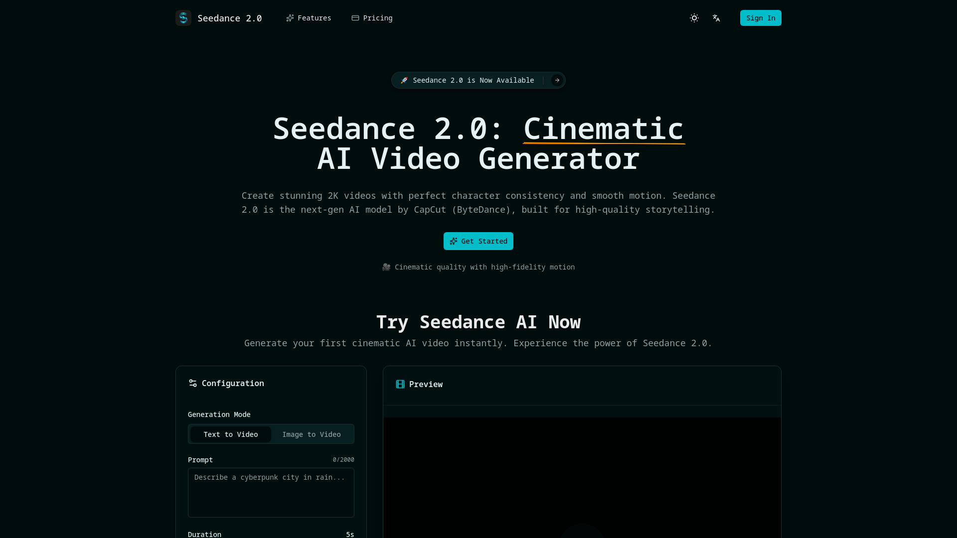 Next-gen AI video generator by CapCut/ByteDance for cinematic 2K videos with perfect consistency.