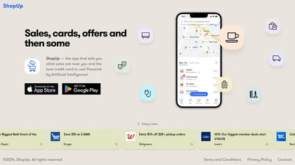 ShopUp App - the app that tells you what sales are near you and the best credit card to use! Powered by Artificial Intelligence!