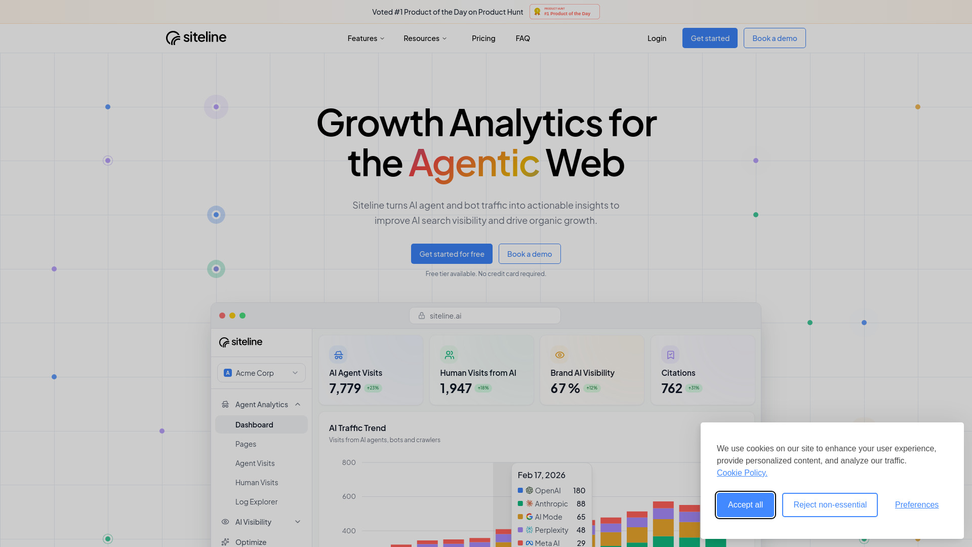 Analytics platform to track AI agent traffic and optimize visibility in AI search results.