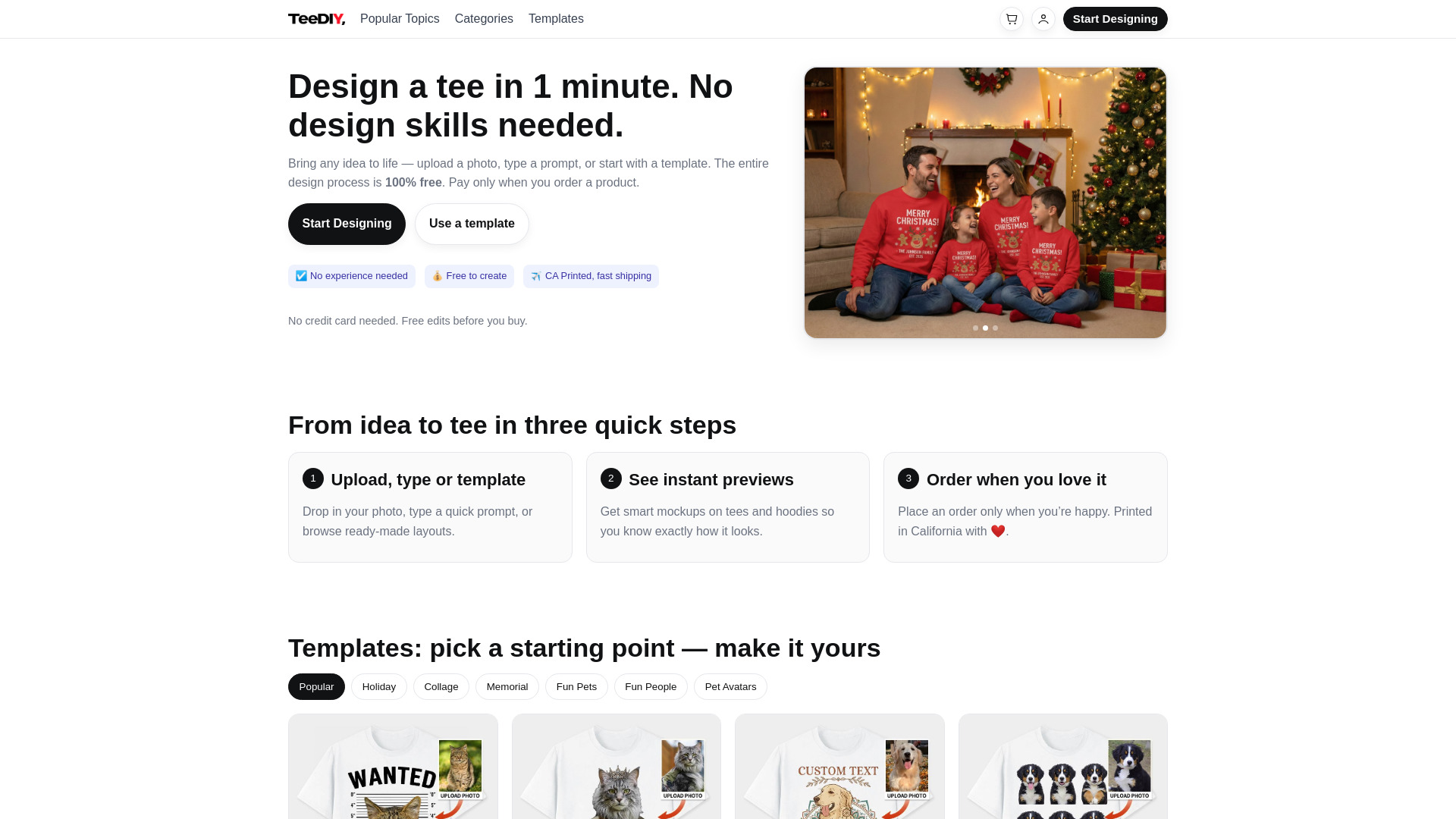 Easy, free AI tool to design custom apparel and t-shirts, paying only upon order.