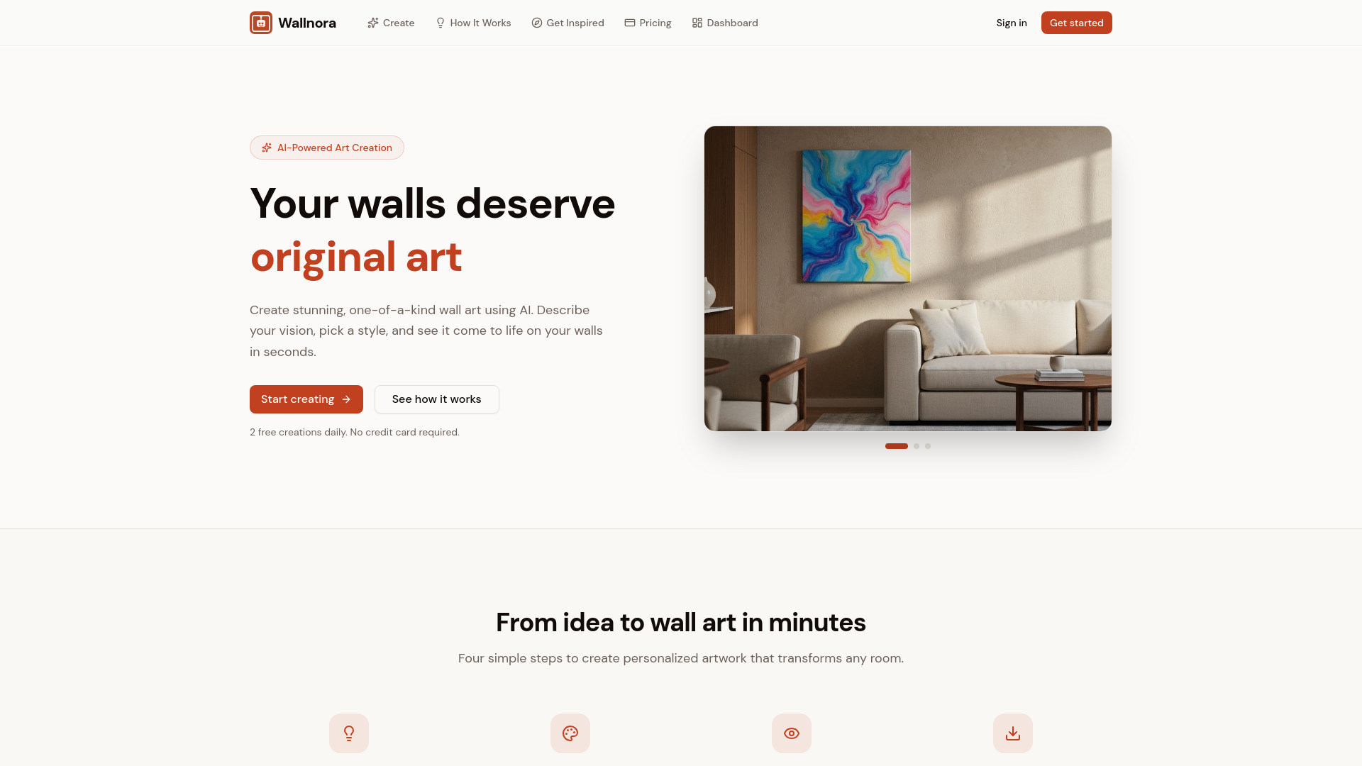 AI wall art generator with realistic room preview for custom home decor and commercial prints.